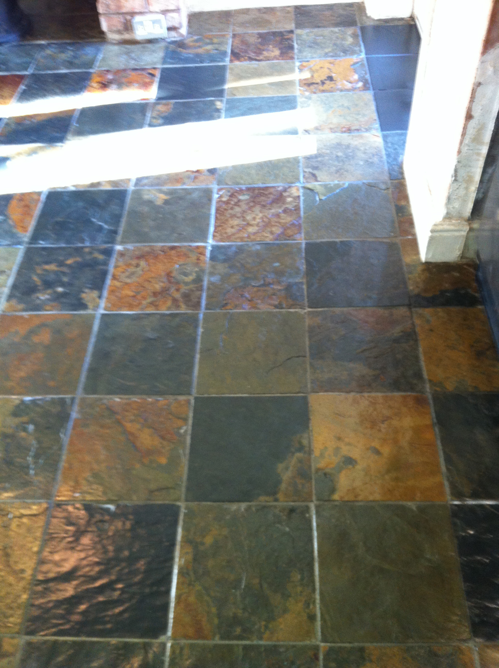 Most Slate floors contain old sealers that break down & dirt gets ingrained underneath. A chemical clean is done to break down and remove all old sealers & waxes.